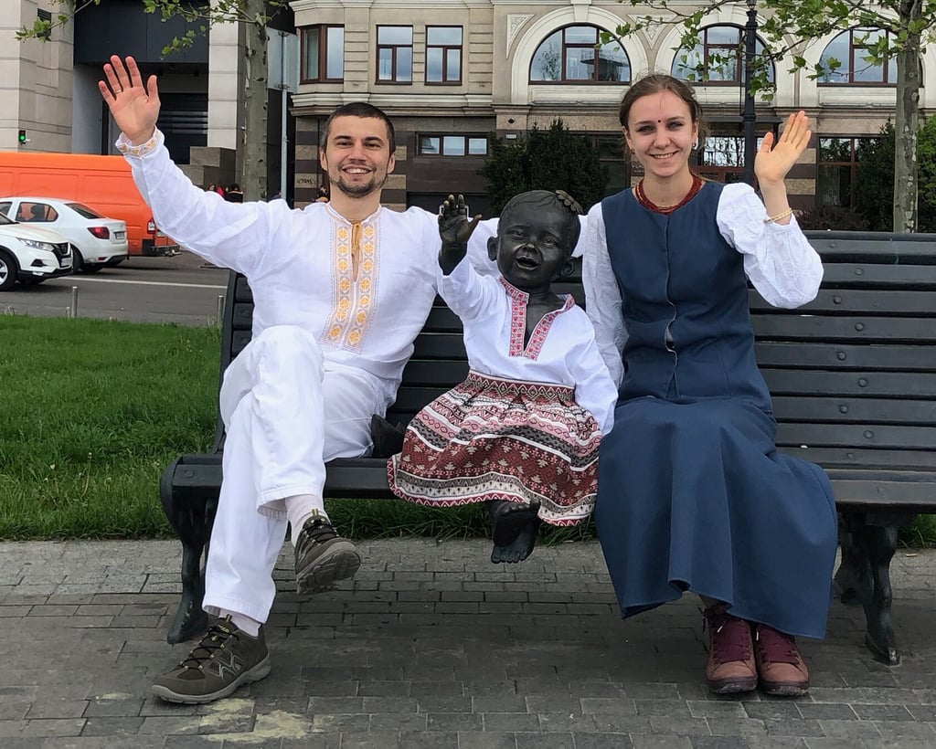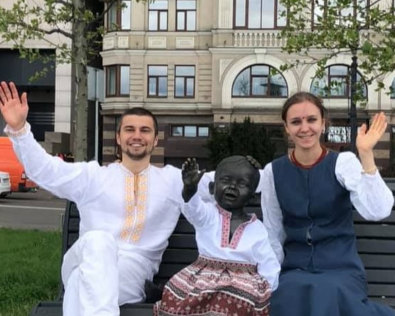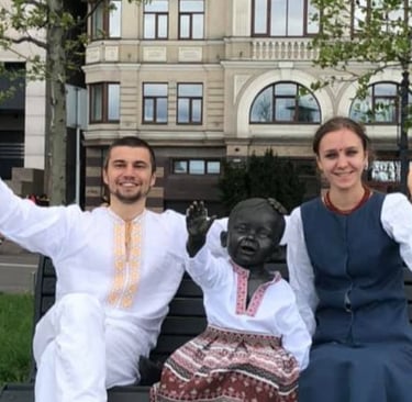 На Поштовій площі у вишиванки одягли скульптури малюків-засновників Києва