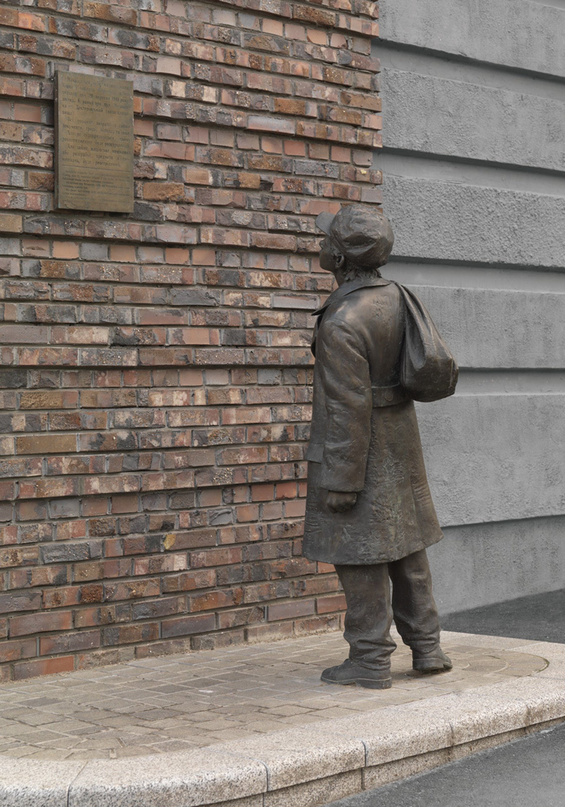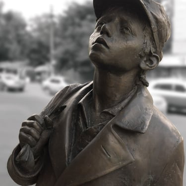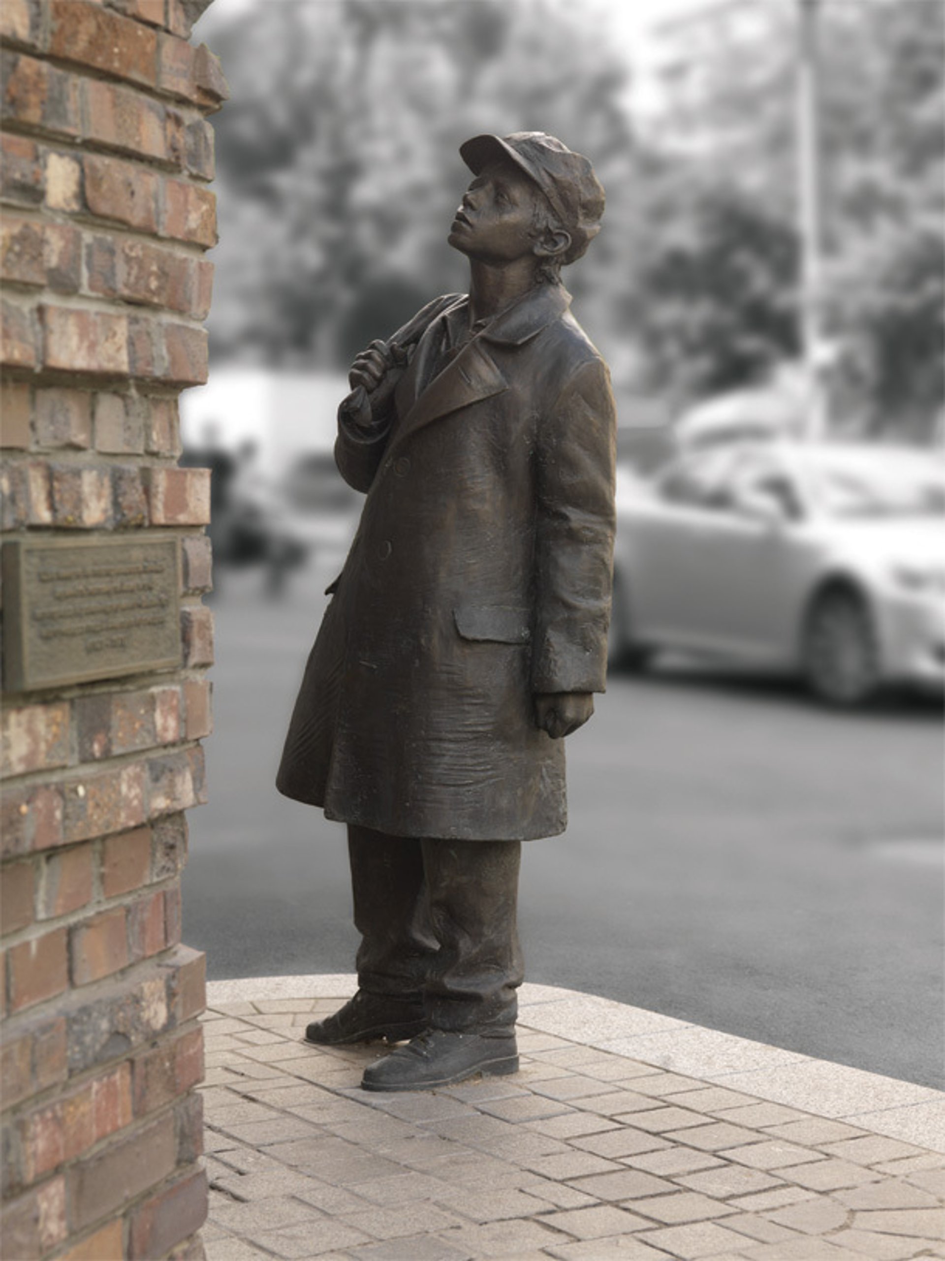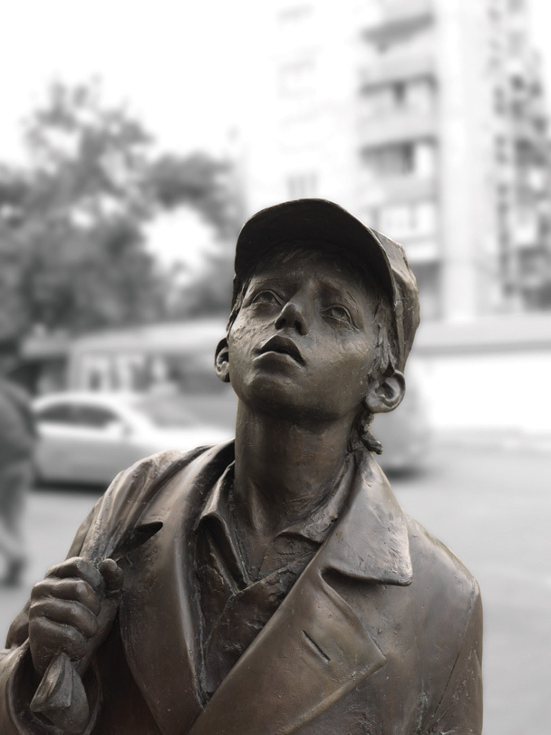 Бронзова фігура (заввишки 165 см) хлопчика — персонажа роману «Бабин Яр», який читає наказ київської окупаційної влади 1941 року: