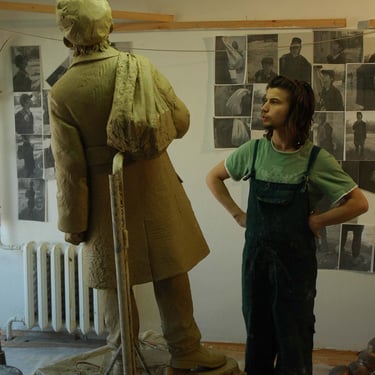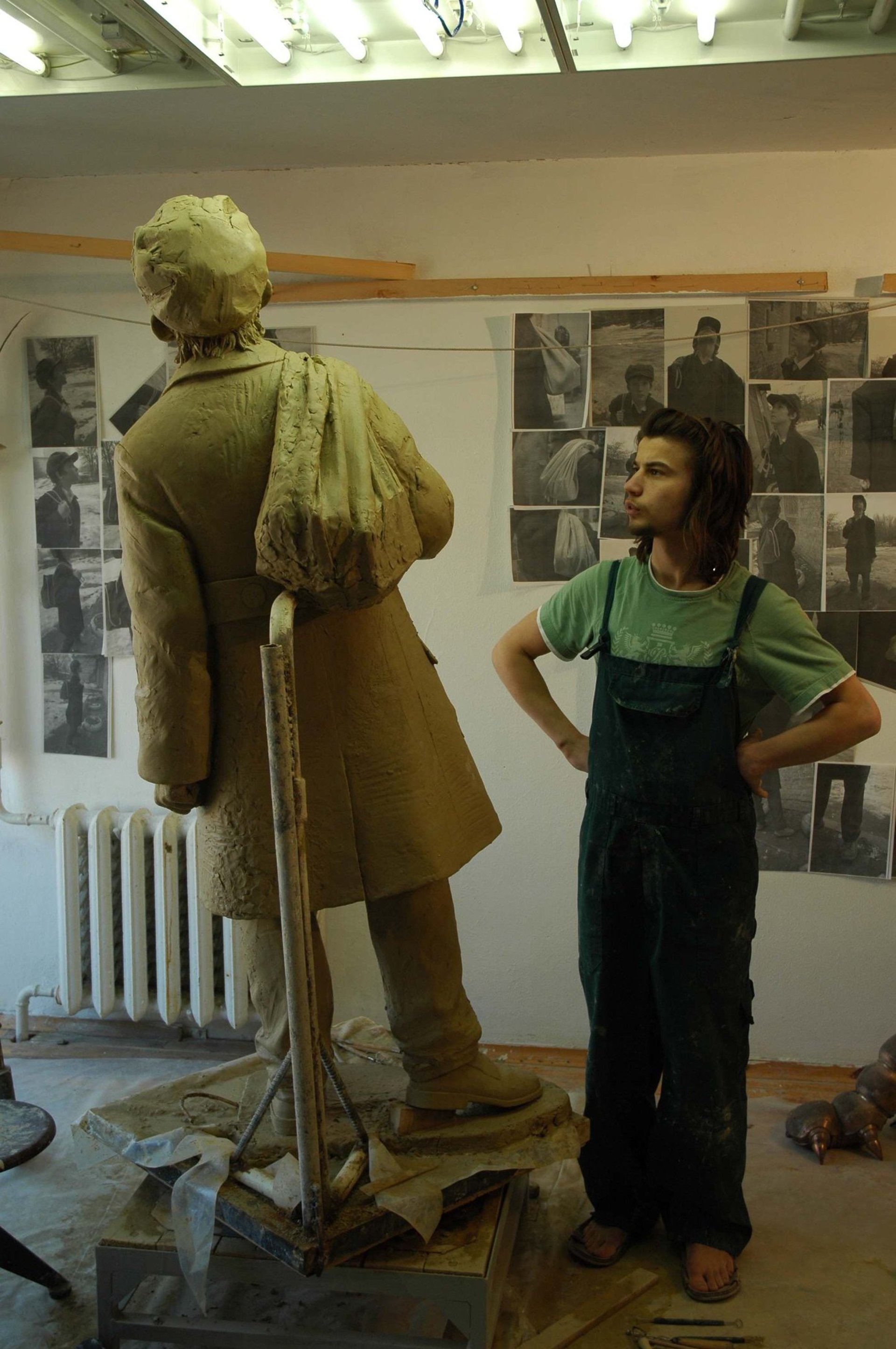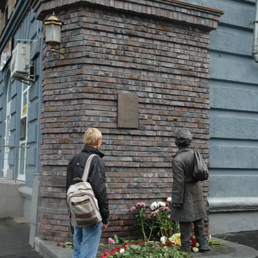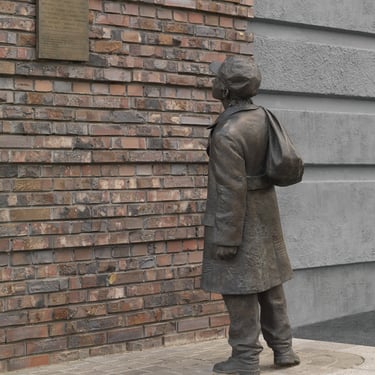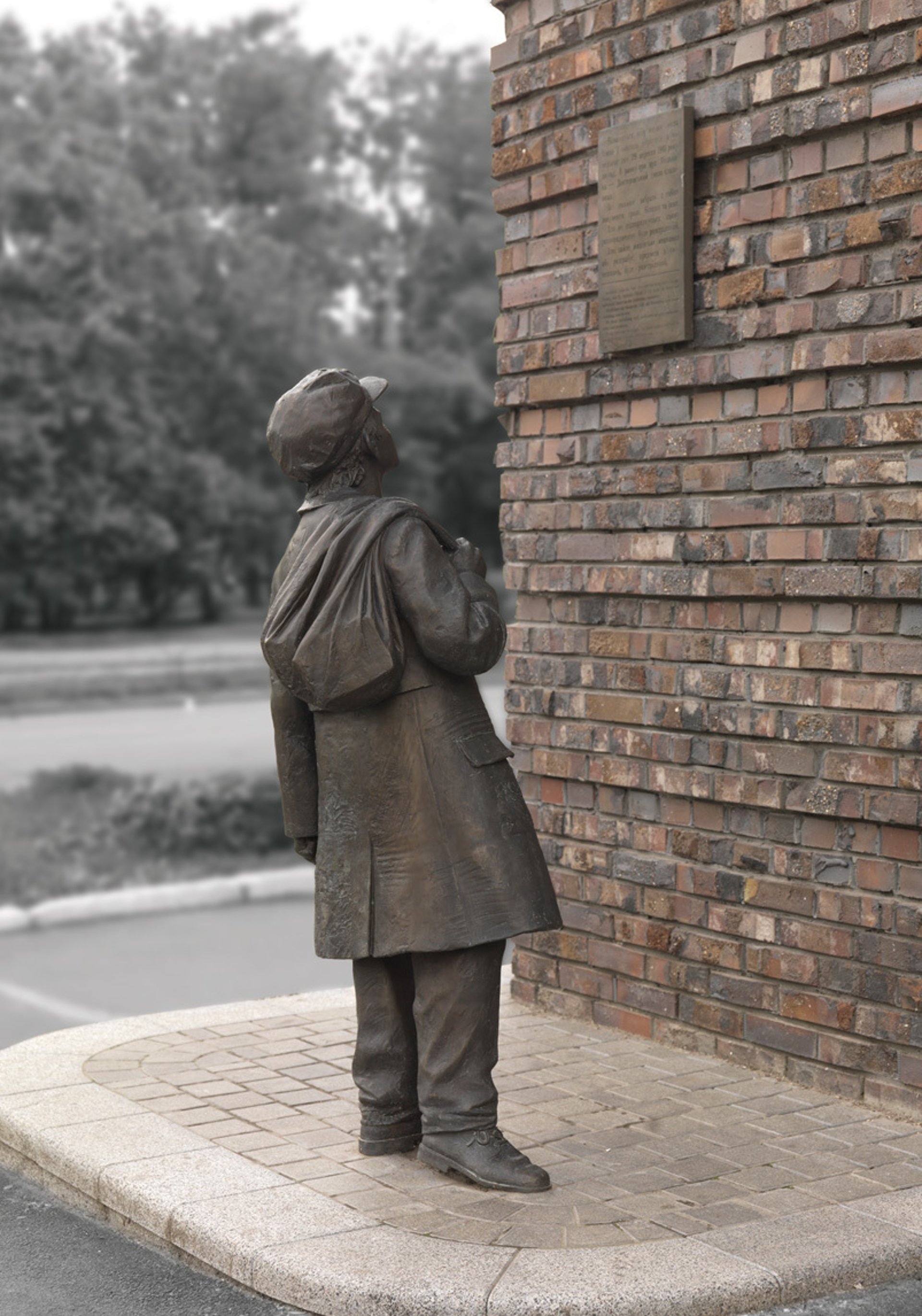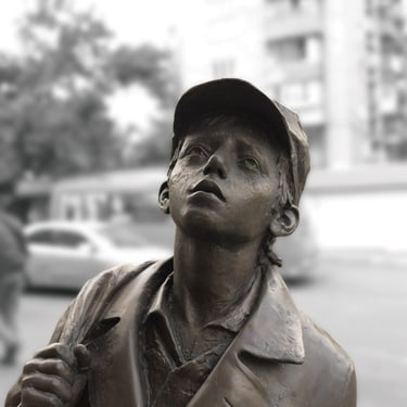 Бронзова фігура (заввишки 165 см) хлопчика — персонажа роману «Бабин Яр», який читає наказ київської окупаційної влади 1941 року:
