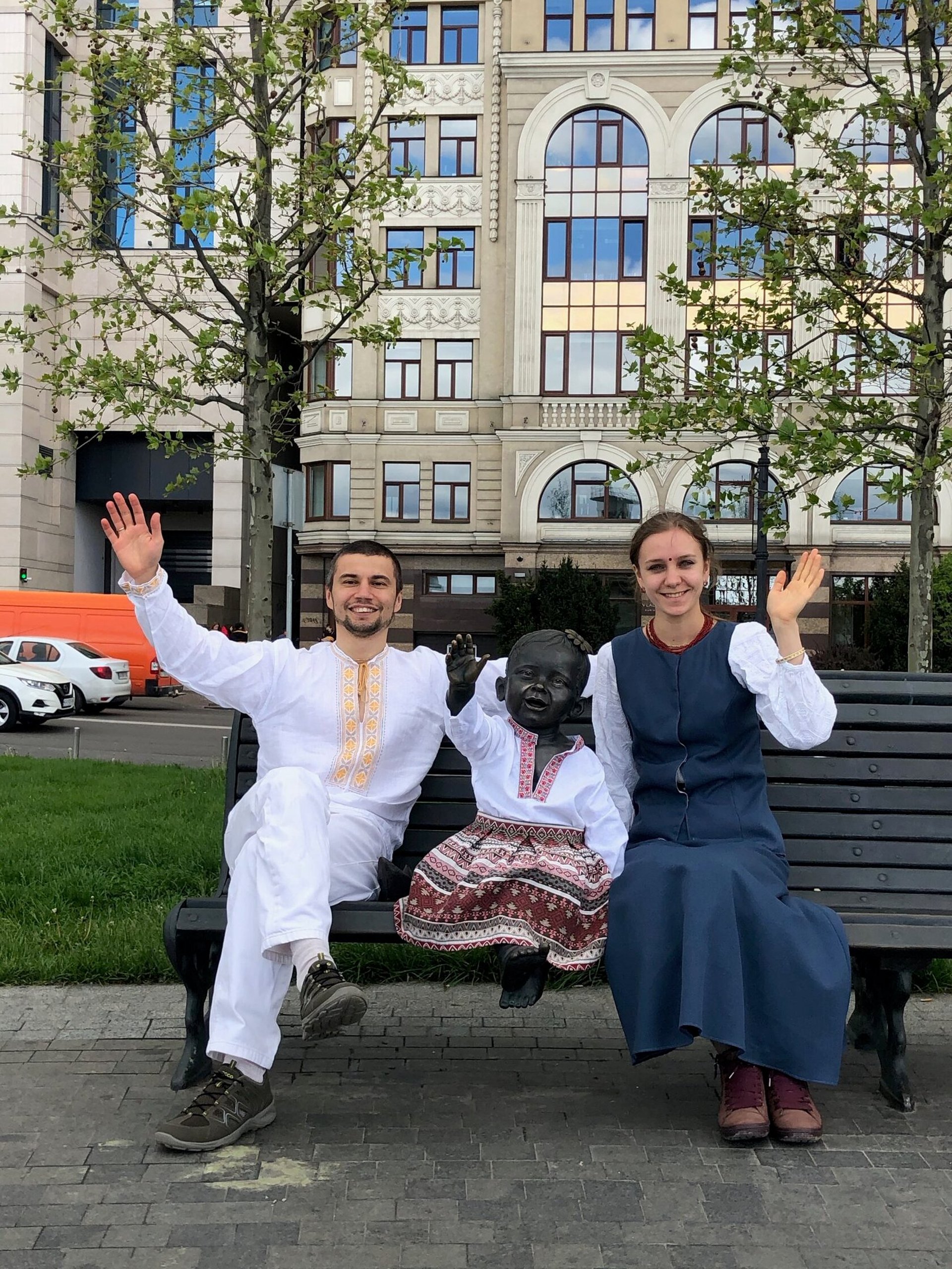 «Батько запропонував, щоб скульптура братика стала моєю другою дипломною роботою. Я зробив кілька варіантів фігури, і це наштовхнуло мене на думку створити групову композицію, персонажами якої були б малюки. Обговорив цей план з батьком, і виникла ідея показати легендарних засновників Києва в образах маленьких дітей. Вирішили, що вони будуть пускати паперові кораблики по карті столиці»