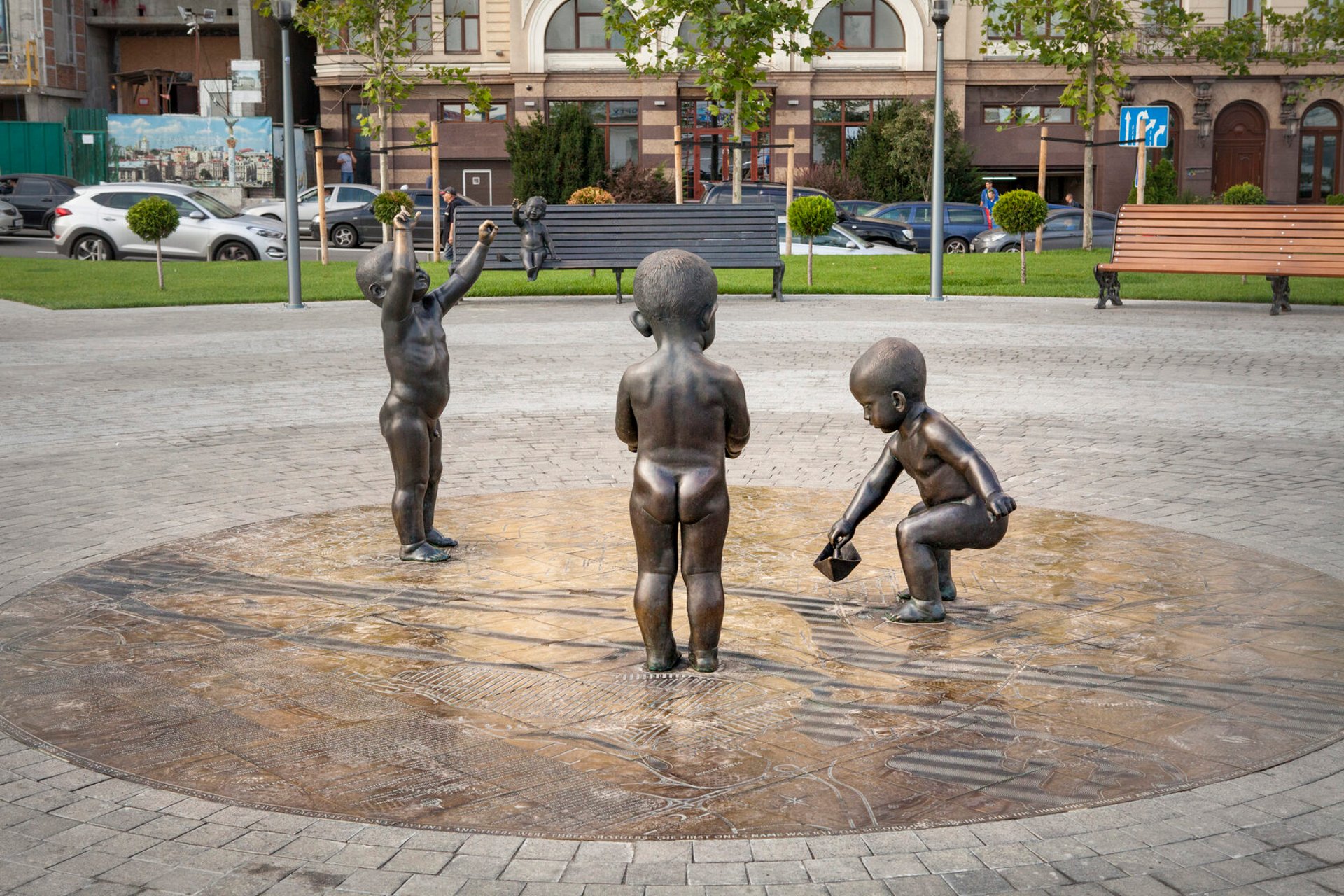 Основу композиції складають три фігури хлопчиків, які є прообразами легендарних братів-засновників Києва — Кия, Щека і Хорива. Діти граються корабликами на стилізованій карті Києва, у декількох метрах знаходиться бронзова лавка, на якій сидить маленька дівчинка, прообраз сестри Либідь.